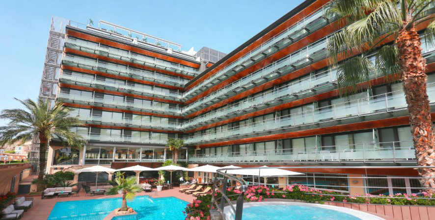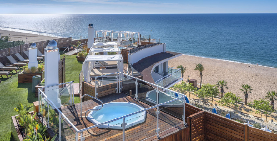 Zur Hotelanlage gehören eine neue Dachterrasse mit Pool und Panoramablick auf Calella, ein Chill-out-Bereich, eine Bar mit Terrasse, ein Fitnessraum sowie zwei weitere Pools.