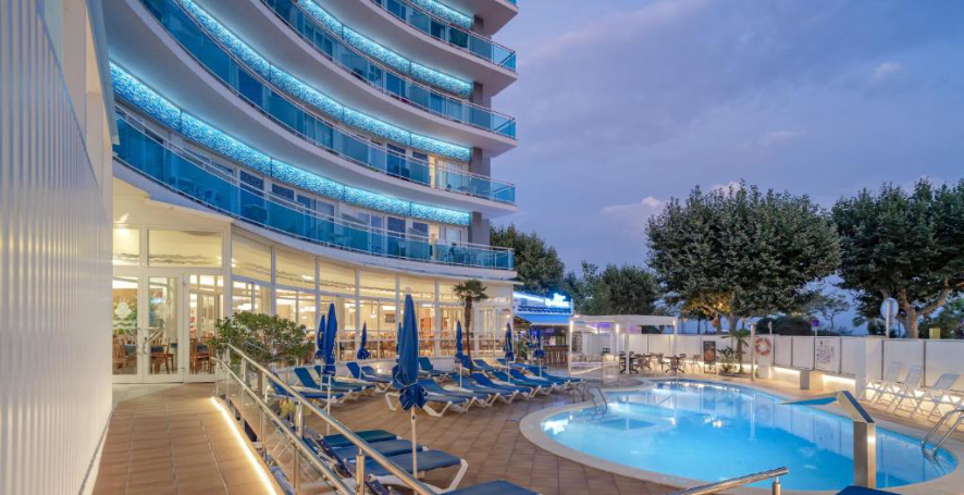 Das Hotel liegt direkt an der Strandpromenade. Die renovierten Zimmer sind mit Bad/WC, Klimaanlage, Minibar, Safe, TV und Balkon ausgestattet. Auf Anfrage ist ein Premium Zimmer mit Meersicht buchbar. Lassen Sie sich im neuen italienischen Restaurant verwöhnen oder im Buffetrestaurant mit Terrasse und Meerblick.